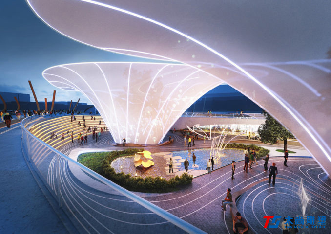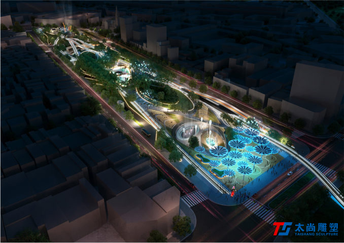太尚雕塑的設(shè)計(jì)解釋是一個(gè)關(guān)鍵的設(shè)計(jì)元素。主要的步行和活動(dòng)網(wǎng)絡(luò)通過沿著場(chǎng)地前鐵路曲線的人行道被輕輕抬高,提醒游客其過去的城市結(jié)構(gòu)。它們勾勒出主動(dòng)和被動(dòng)空間的混合,使我們能夠創(chuàng)建一個(gè)高度連接和可滲透的公園空間,同時(shí)最大限度地保留并最大限度地減少對(duì)場(chǎng)地現(xiàn)有成熟樹木的影響。人行道的末端是一個(gè)戲劇性的扭曲鋼雕塑,進(jìn)一步紀(jì)念了基礎(chǔ)設(shè)施的歷史。